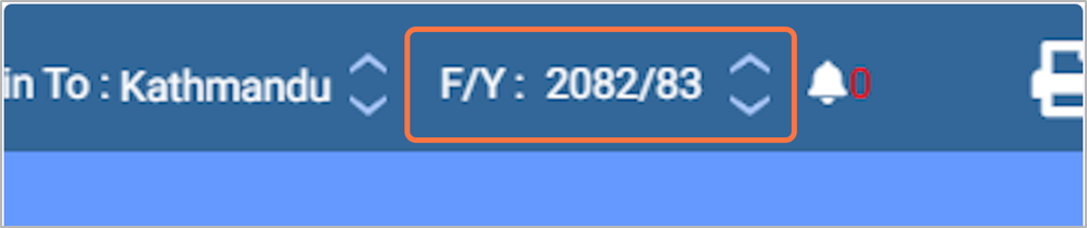This field shows the fiscal year currently in use. If you want to change it, click on the field and select the desired fiscal year as per your need.