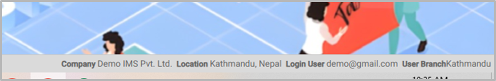 Eg: Company Demo IMS Pvt. Ltd. Location Kathmandu, Nepal Login User demo@gmail.com User BranchKathmandu¶
