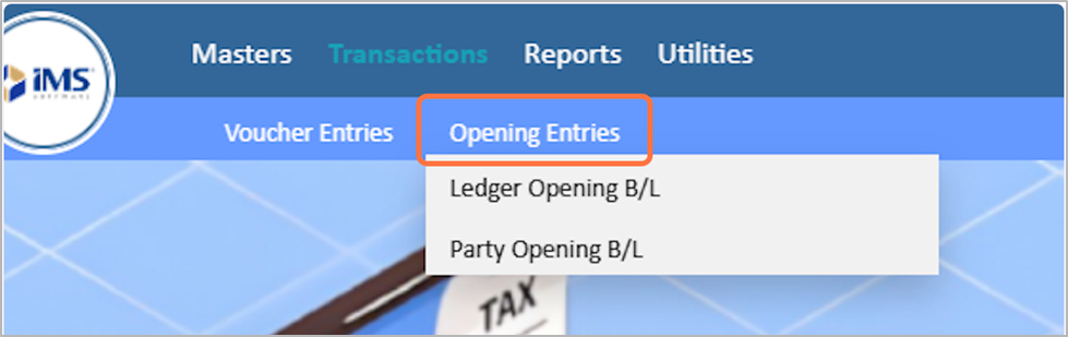 - Party Opening B/L – Enter opening balances for customers and vendors to start tracking receivables and payables.