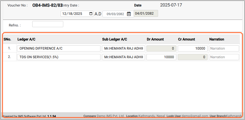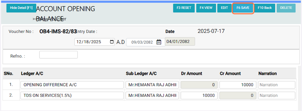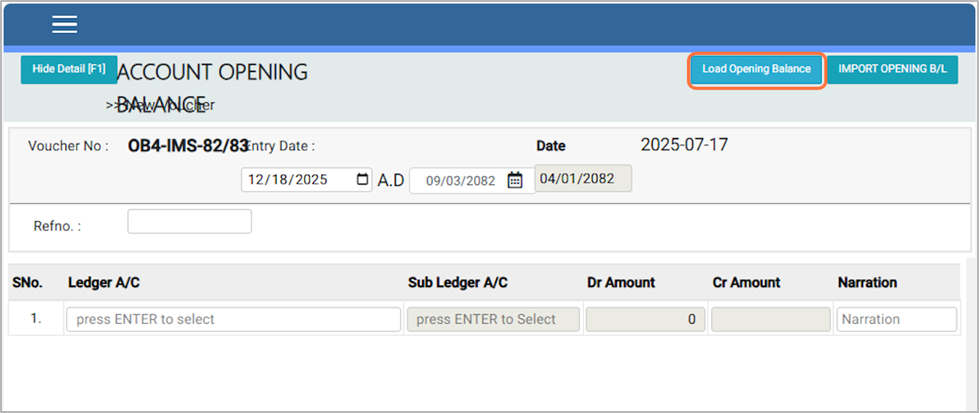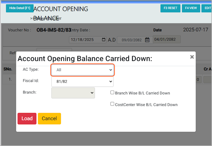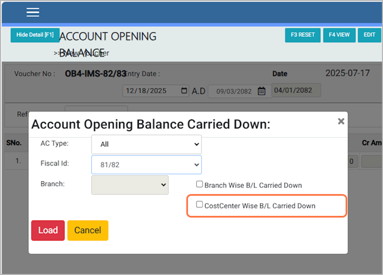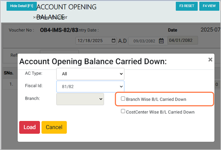 3. Choose the Fiscal ID (e.g., 81/82). This process is done on the first day of the new fiscal year to record the previous year’s opening balances.¶