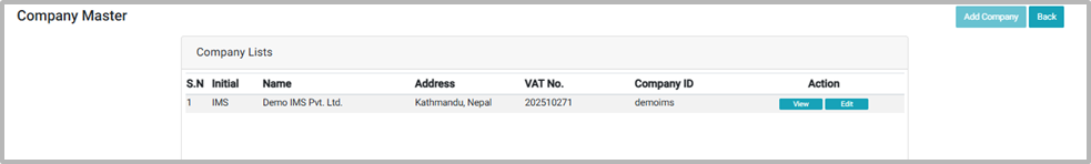 A Company Profile is a centralized record of essential company information stored in the system, such as the company name, address, VAT/PAN number, and other key details. It defines the company’s identity and contains core operational information intended for general client view only.¶