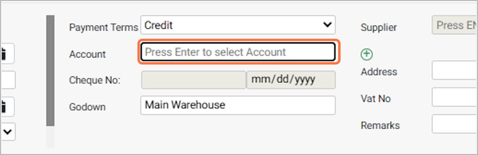 If you select Credit, Cheque, or Other as the “payment terms”, enter the “Account” as supplier, and the “Supplier details” will be auto-filled.