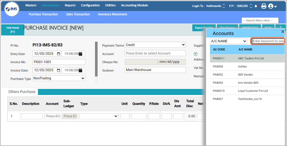 Step to Create And Manage Non-Trading Purchase Invoice¶