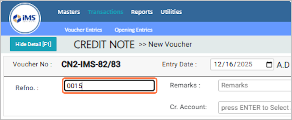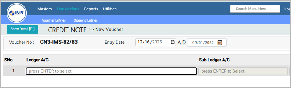 A Credit Note (Account-Based) is an accounting document used to reduce the amount receivable from a customer or reduce the amount payable to a supplier based on account adjustments, without referencing item details.It is essentially the opposite of a Debit Note (A/C Based). Note: Review all details carefully before saving. The Credit Note (Account-Based) Transaction cannot be edited after it is saved.¶
