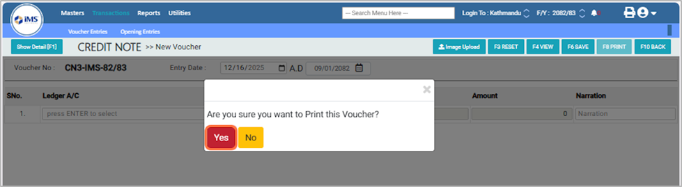 14. A confirmation pop-up will appear asking, "Are you sure you want to print this voucher?" Click Yes to print the voucher, or No to cancel the action.¶
