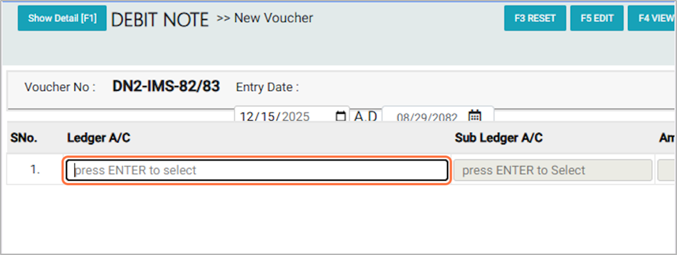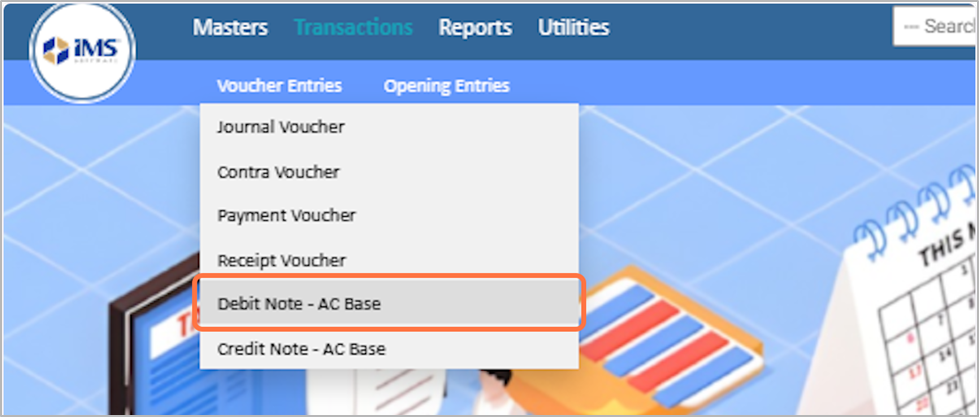3. Choose the Debit Note - AC Base From the Dropdown menu¶