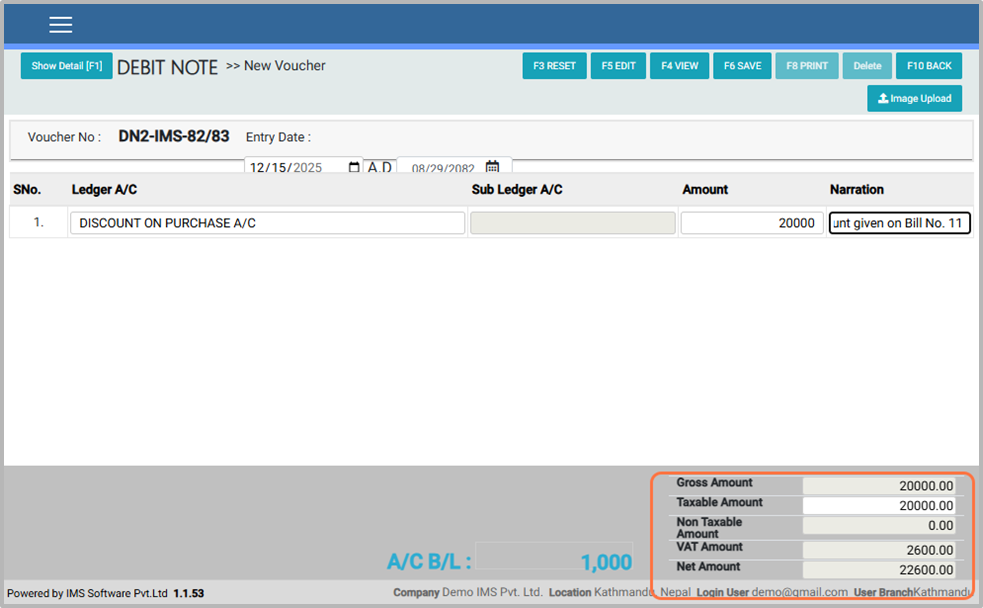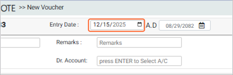 4. Choose the Voucher Entry Date, for Eg: 2025-12-15¶