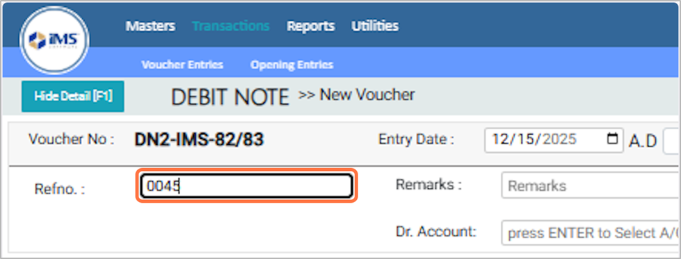 5. Enter the Reference Number Of Voucher(RefNO) for Eg: 0045¶