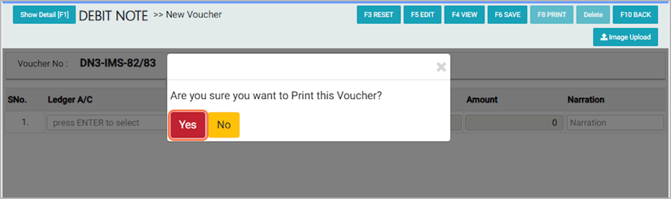 14. A confirmation pop-up will appear asking, "Are you sure you want to print this voucher?" Click Yes to print the voucher, or No to cancel the action.¶