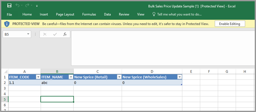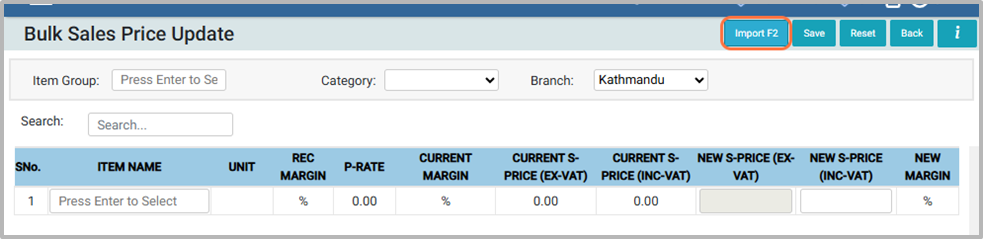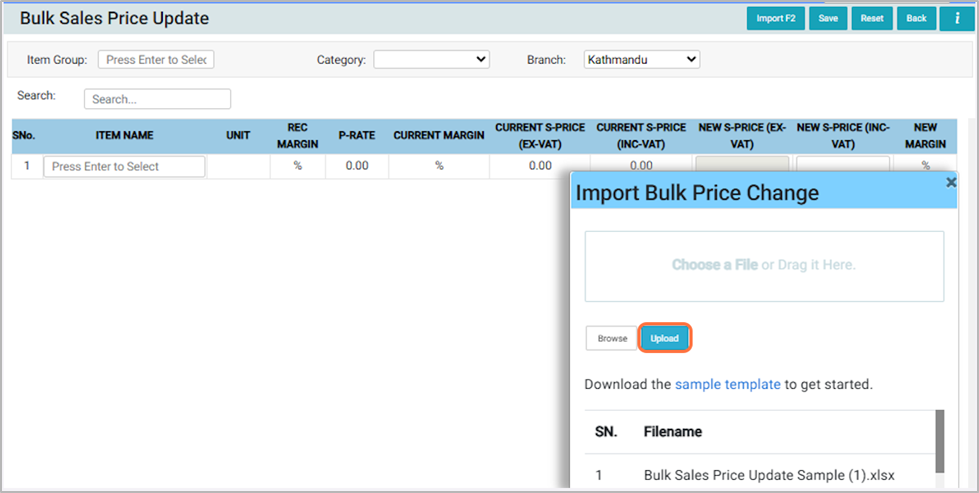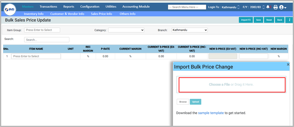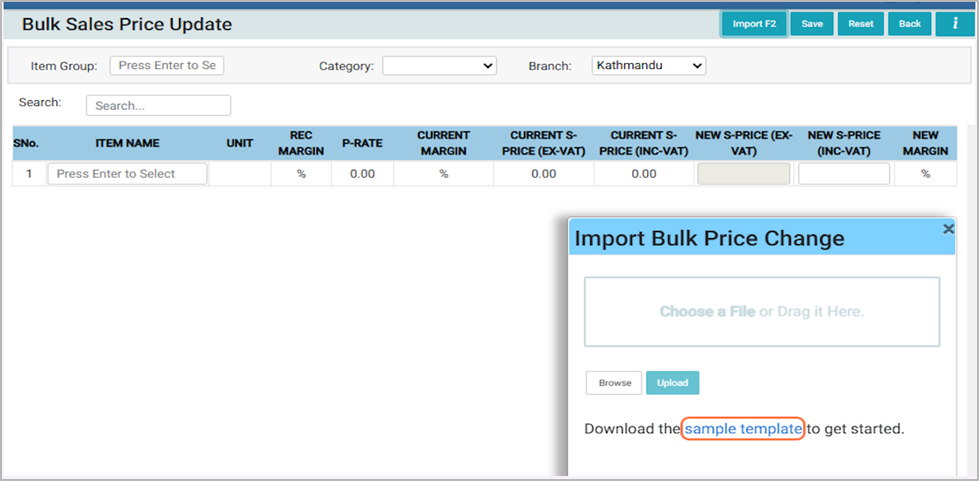 2. From Import Bulk Price Change pop up, click on the Sample Template¶