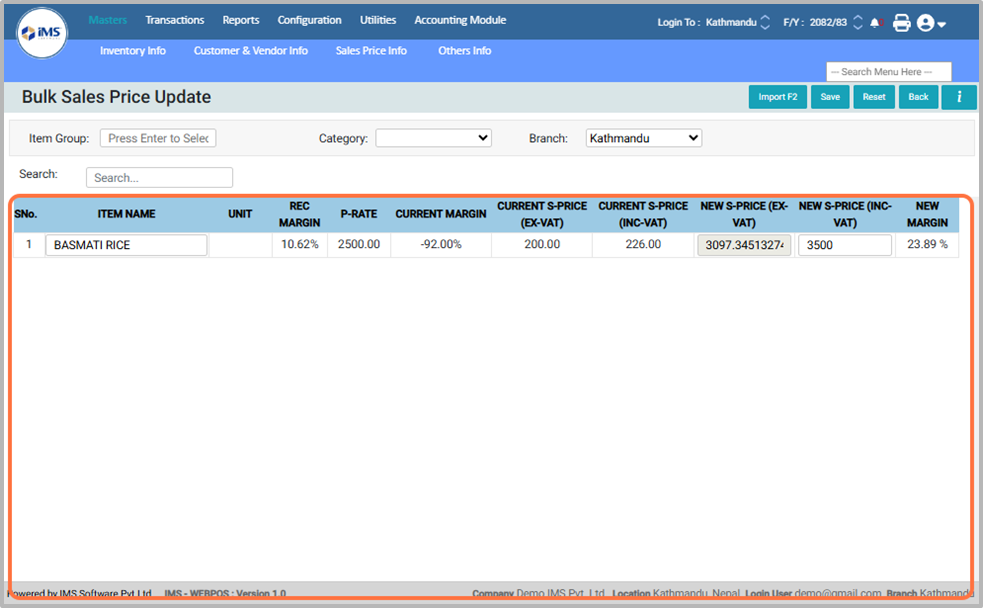 10. A message “Price Changed Successfully” will appear, confirming that the bulk price upload is complete.¶