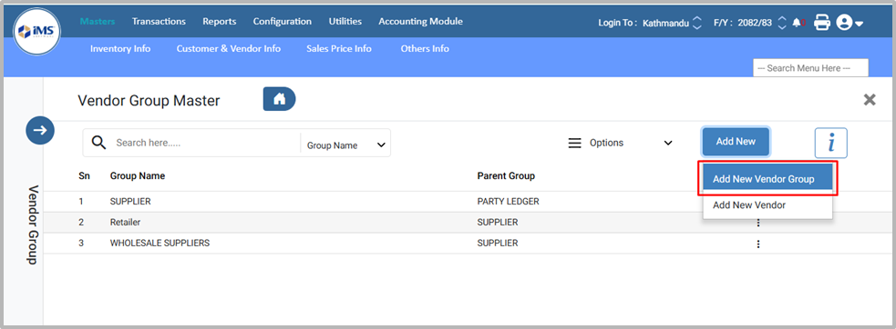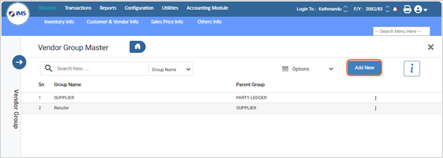 5. Click the “Add New Vendor Group” button to add a vendor group.¶
