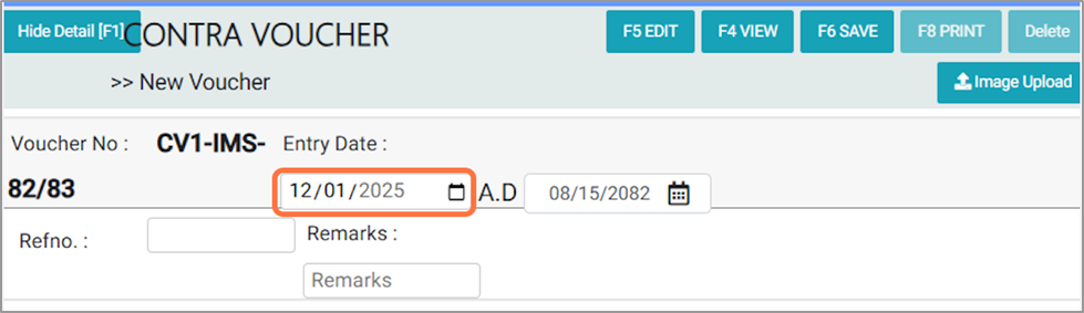 4. Enter the Voucher Entry Date, For Eg: 2025-12-01¶