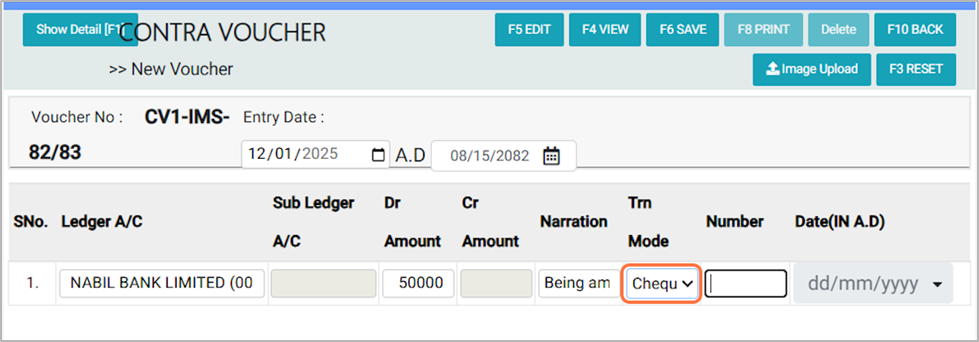 13. In the Date (AD) field, Choose the cheque issue date.¶
