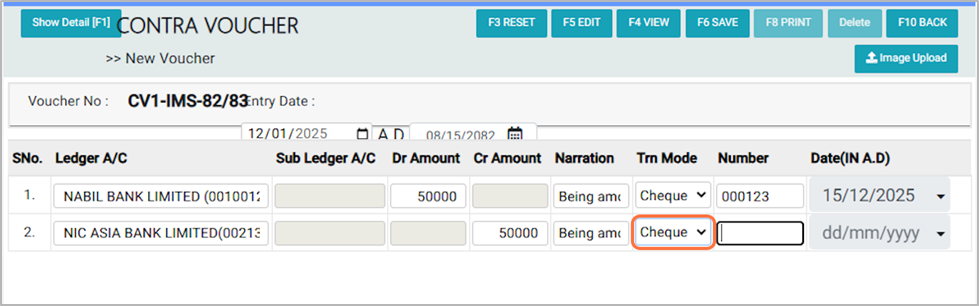 17. In the Trn Mode field, select the “Cheque” option from the available options.¶