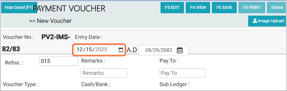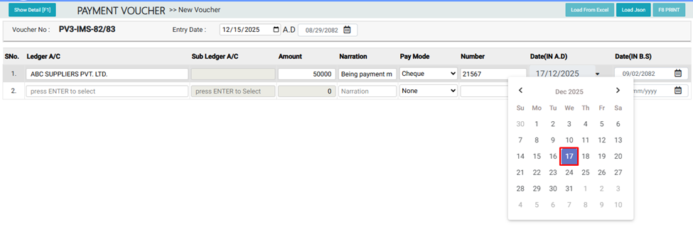 5. Choose the Voucher Entry Date: For example, 2025-12-15¶