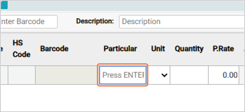Click Enter in the Particular field to select the item you want to purchase.¶