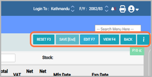 20. Buttons in Purchase Entry: