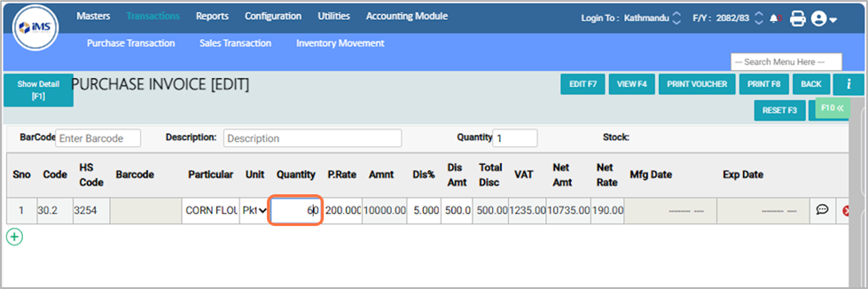 21. Press F7 or click Edit to modify the details of an existing purchase entry.¶