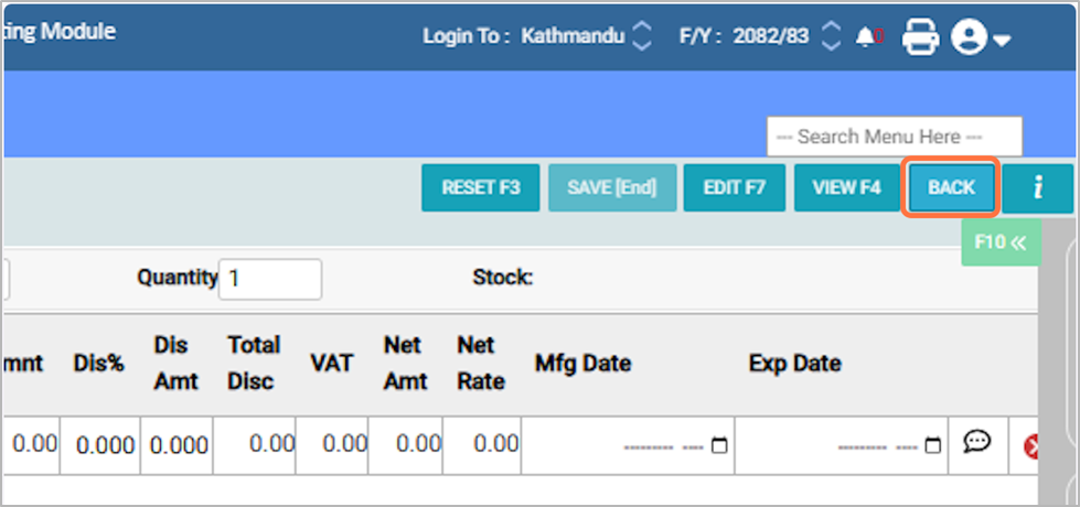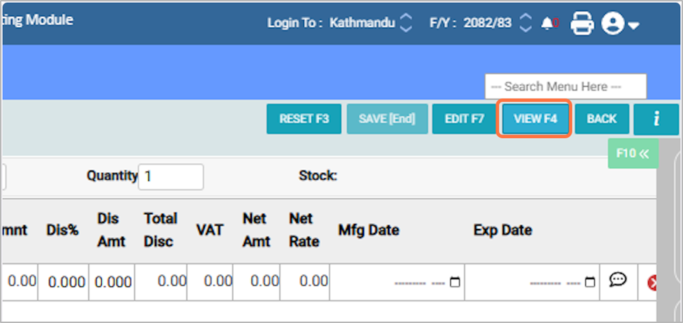 24. Press F4 or click View to see the details of a purchase entry. After viewing, click Back to return to the main screen.¶