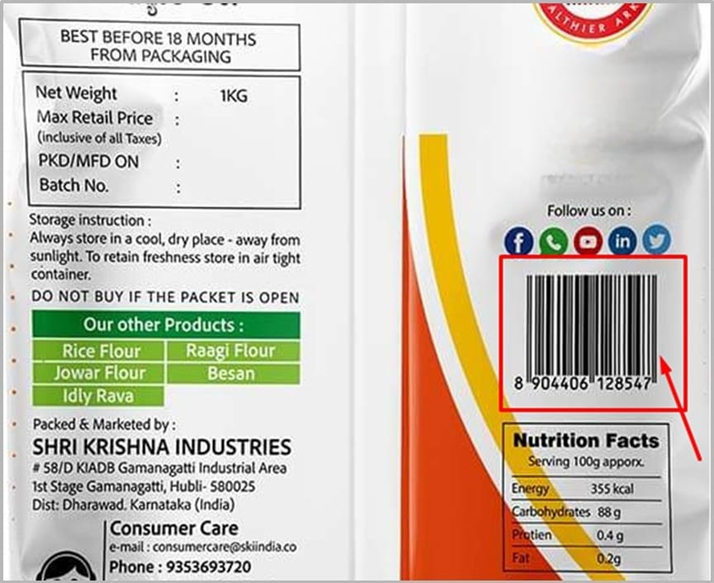 A barcode is a set of lines and spaces that stores product information, such as ID or price. It helps in fast and accurate tracking of items in sales, purchases, and inventory. Example:Cornflour 1 kg can have a unique barcode like 8904406128547.¶