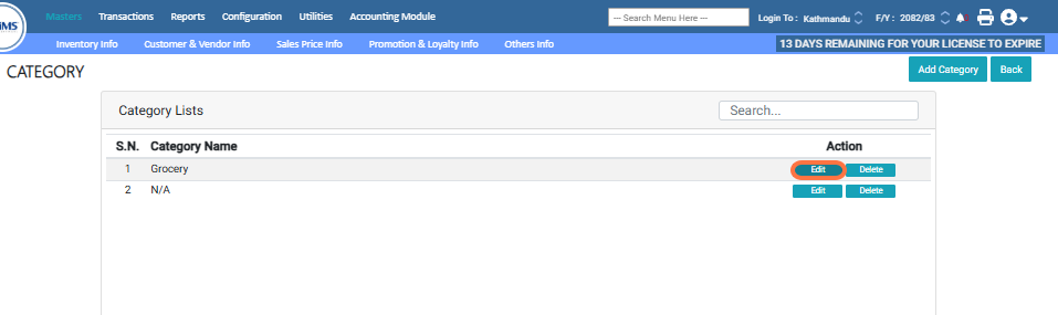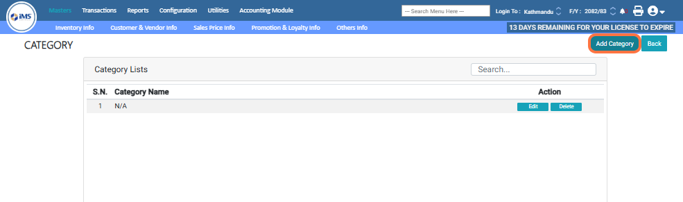 Step 7: Click "OK" when the "Saved Successfully" message appears. The new category will be displayed in the Category List table.