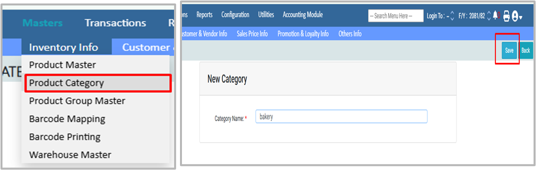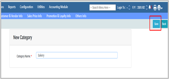 - Enter the Category Name (e.g., Grocery, Electronics, etc.)