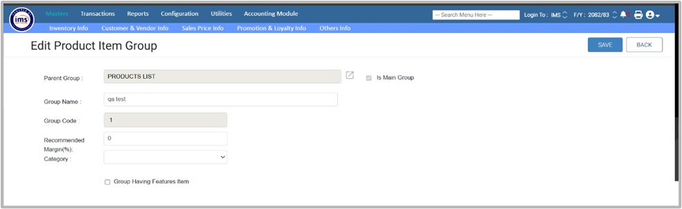 - If "Is Main Group" is checked → it becomes a Parent Group